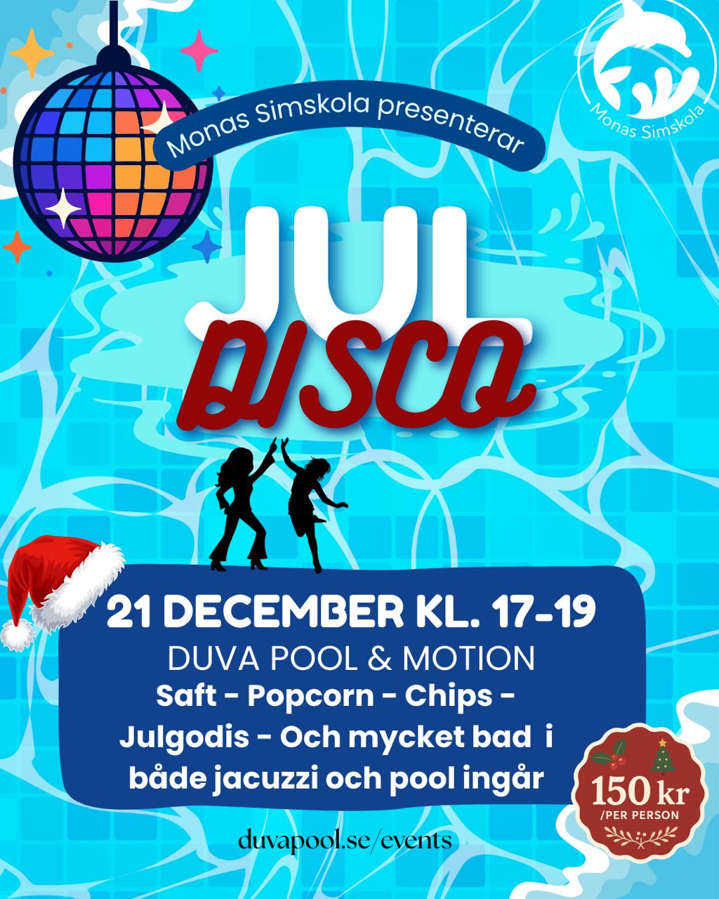 Den 21 december välkomnar vi er på juldisco på Duva Pool & Motion.